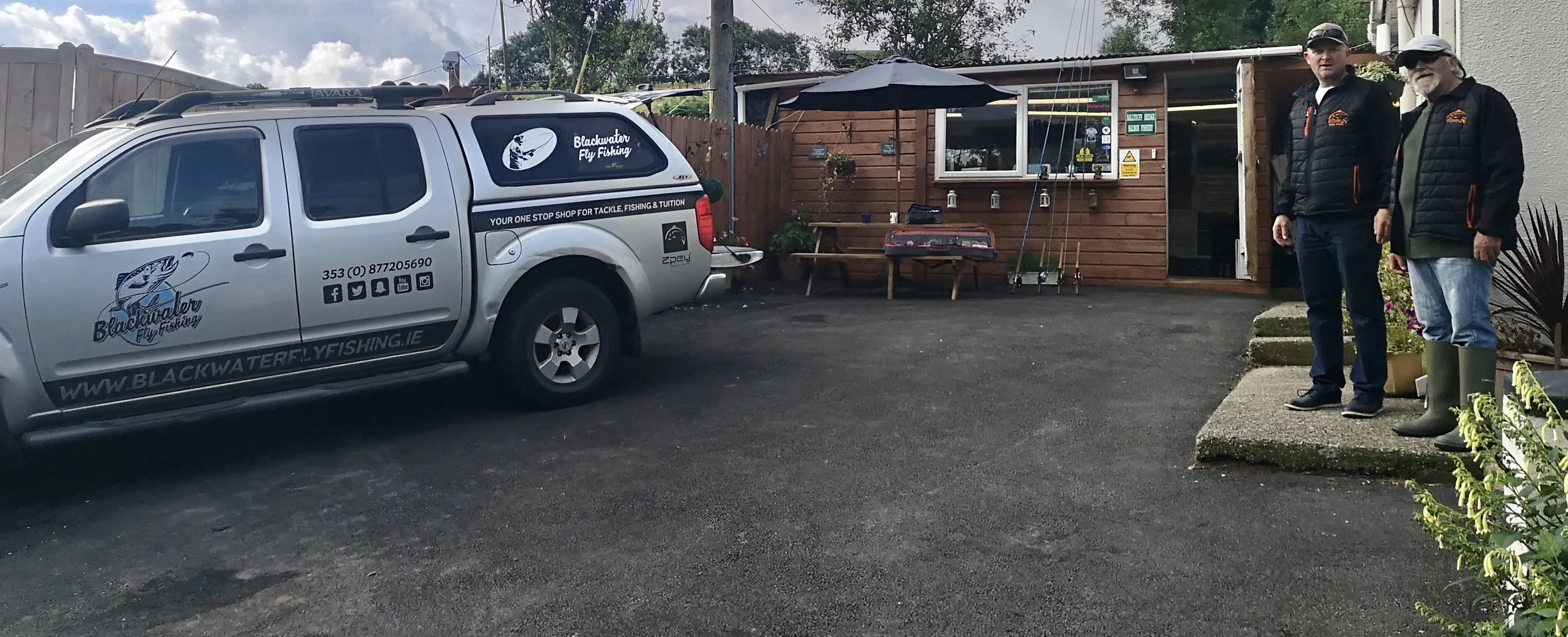 Based just a stone’s throw from the river adjacent to the bridge at Ballyduff is the nerve centre of the fishery. Nestling beside Jason & Connie’s residence is the fishery office and shop in a convenient roadside location. This is where anglers meet up with Jason & Connie to get information on their allocated beat for the day, up-to-the-minute tips & advice, packed lunches (if ordered) and any last minute tackle necessities.